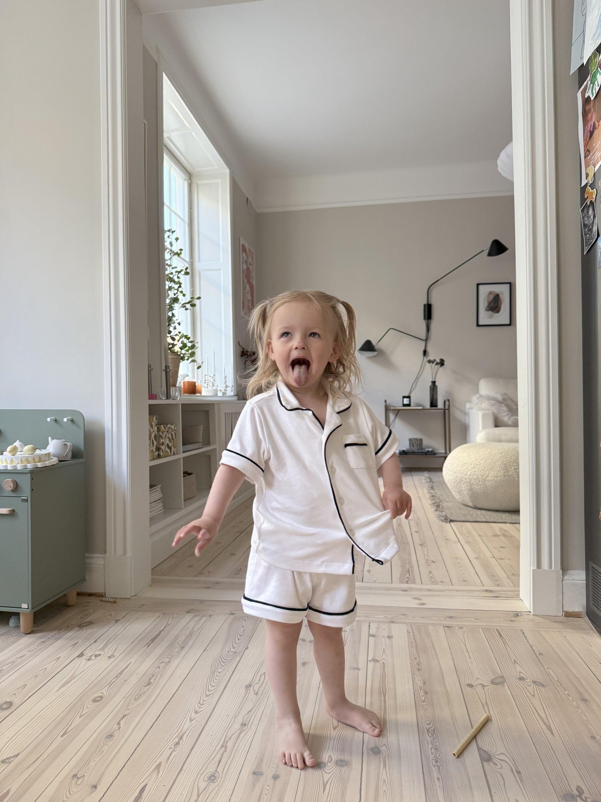 Våra pyjamasar kombinerar skandinavisk enkelhet med oslagbar komfort. Tillverkade av 100% ekologisk bomull känns de extra mjuka mot huden och ger barnen utrymme att både leka och vila bekvämt. Varje plagg är designat för att hålla – med slitstarka sömmar och kvalitetsmaterial som behåller både form och mjukhet tvätt efter tvätt.